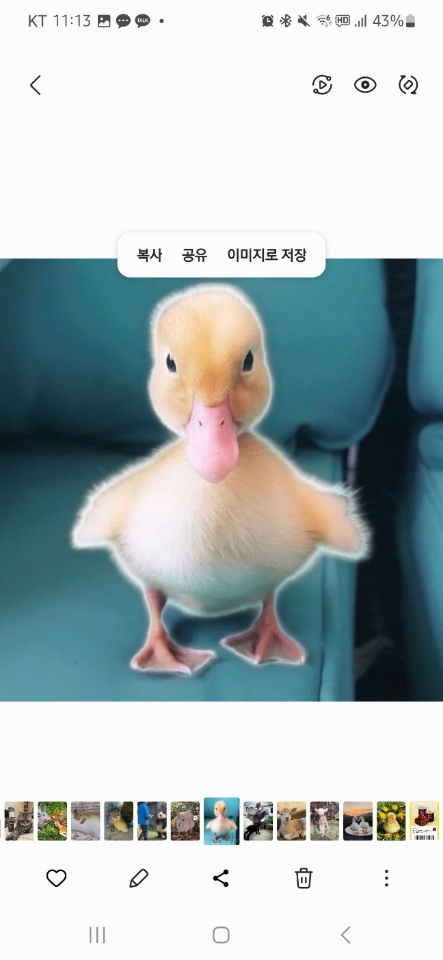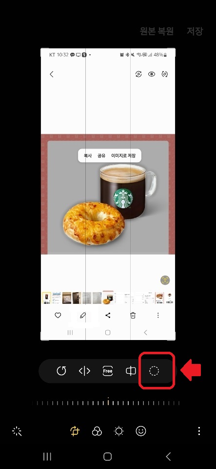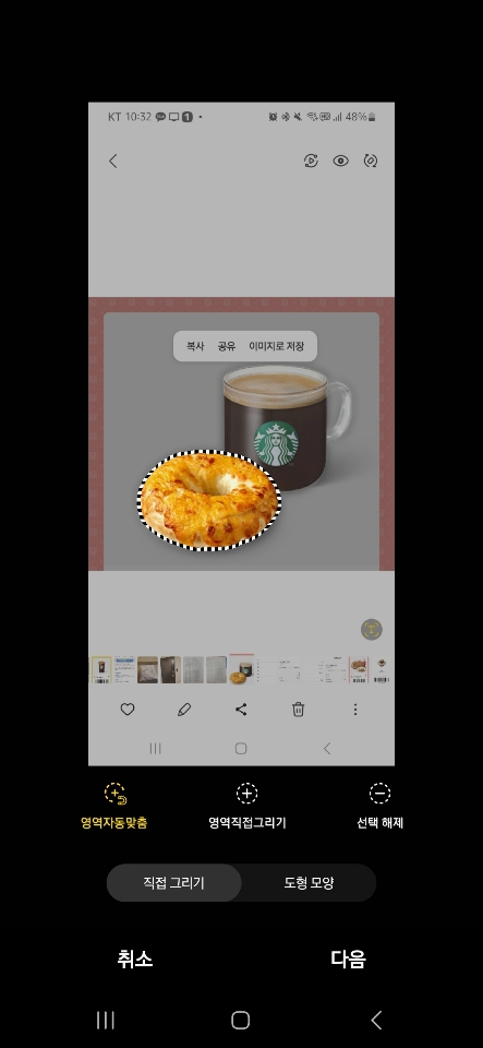 4. 선택이 완료되면 그림 상단에 복사, 공유, 이미지 저장 메뉴가 뜬다.
