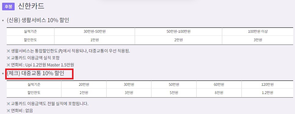 - 신한카드와 우리카드는 교통카드 이용금액도 전월 실적에 포함됩니다.