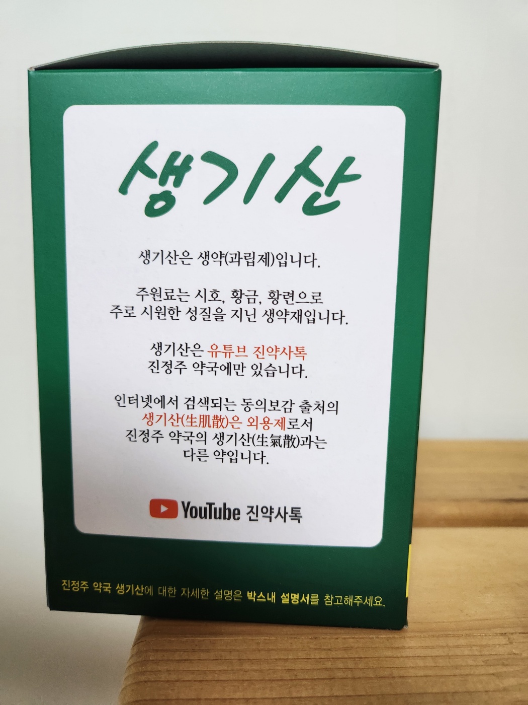 약사님의 그런 마음의 결과로 생기산과 같은 약이 탄생하지 않았나 싶습니다.