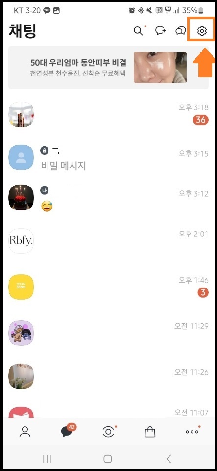 1. 카톡 채팅방에서 설정 누르기