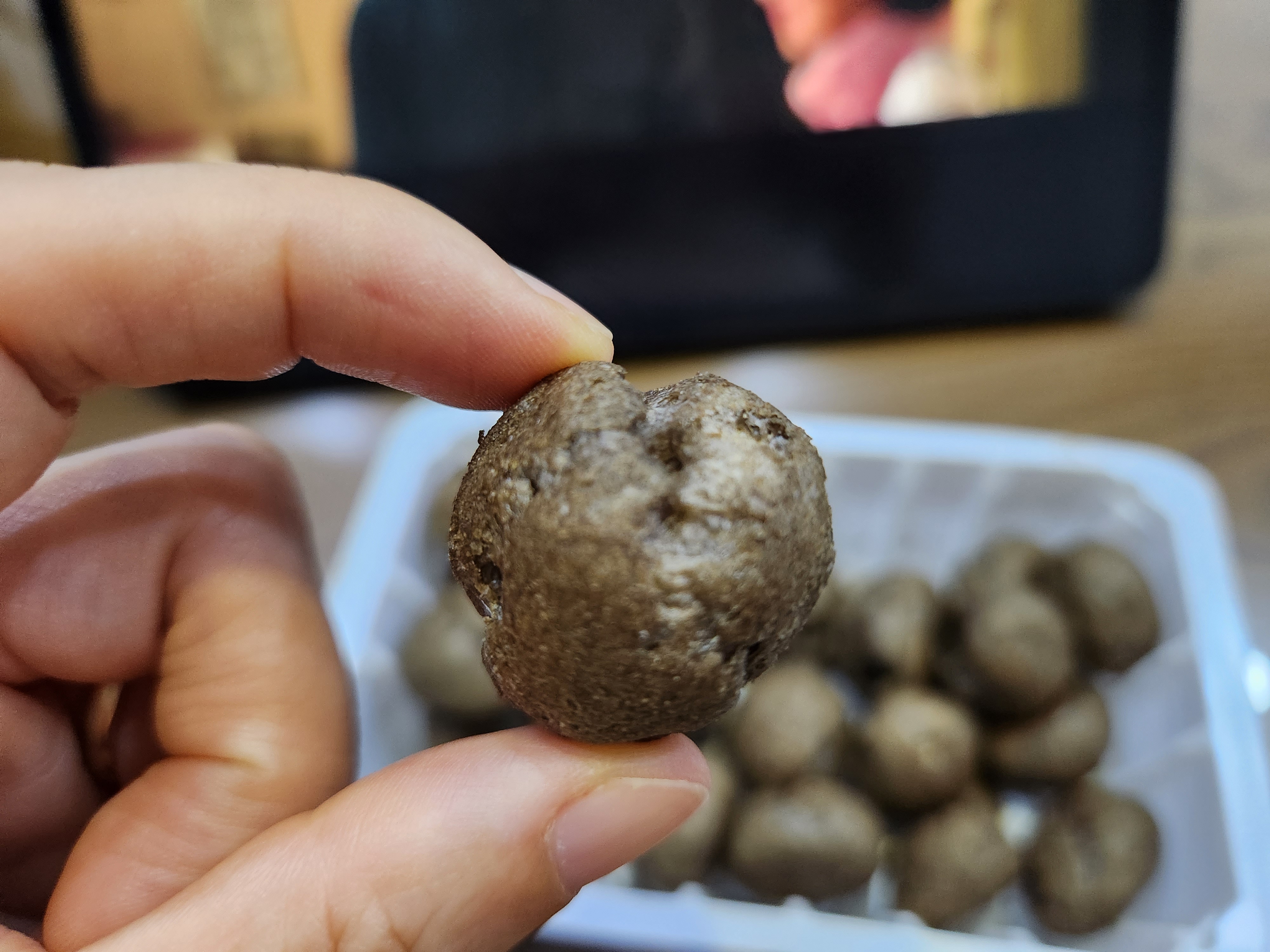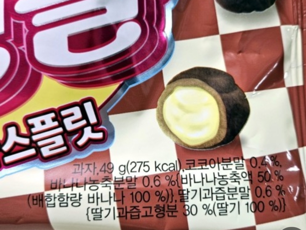 저 사진과 같이 초코볼 속에 바나나 농축액이 들어 있어요.