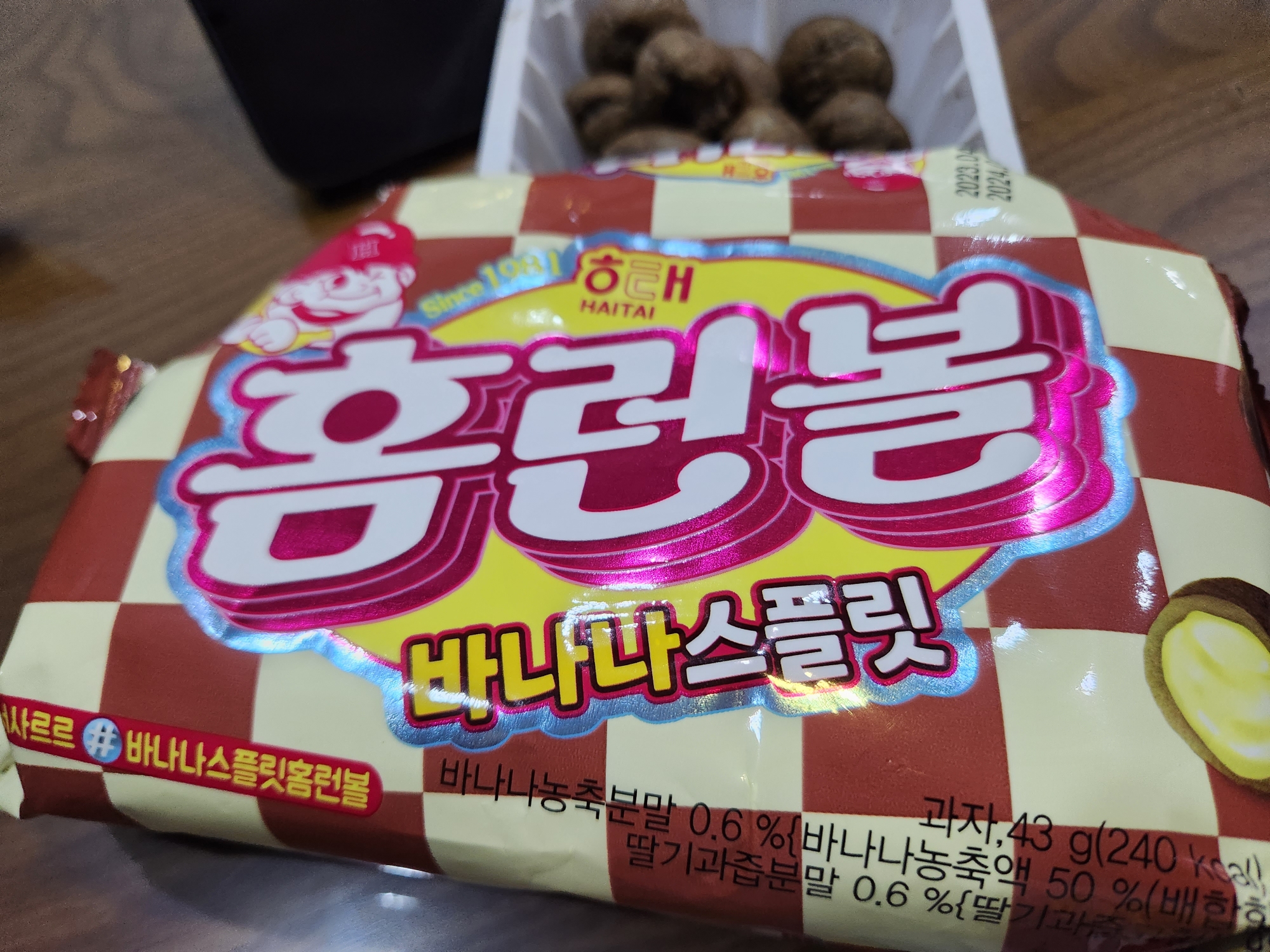그리고 모양은 홈런볼인데 제 머릿속에서는 바나나킥을 먹는 듯한 기분이었습니다.